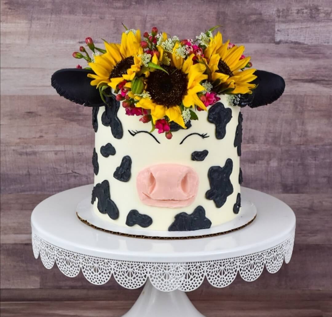 Сладкая Буренушка с красивым цветочным украшением - пальчики оближете!